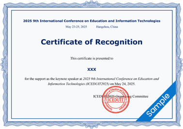 Keynote Speaker can receive a Certificate of Keynote Speaker.